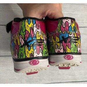 Pink Splat Heelys X2 Girl Skate Shoes, Size Youth 1. Cool Heelys. Some of the wheels spin great. Others don’t and probably need replacement or repair. Replacement parts are easy to get for Heelys. Otherwise, good condition. I love to make bundles! If you want to buy more than one item and combine shipping, send me a message. I will create a personalized listing for you with combined shipping. We are a smoke free home. We have a cat and a dog. Heely Box