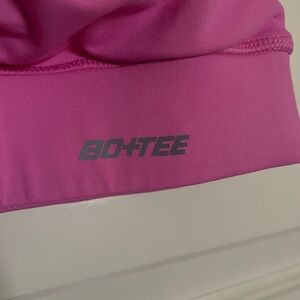 Stay comfortable and stylish with this vibrant Bo + Tee pink sports bra. Ruched detail in the front