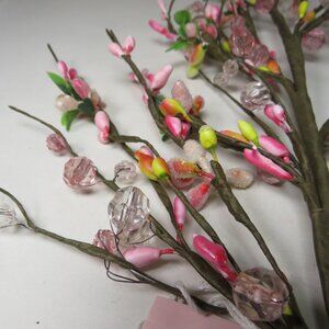 Pink Spring Floral branch with Pip berries loop for hang(with beads and frosted