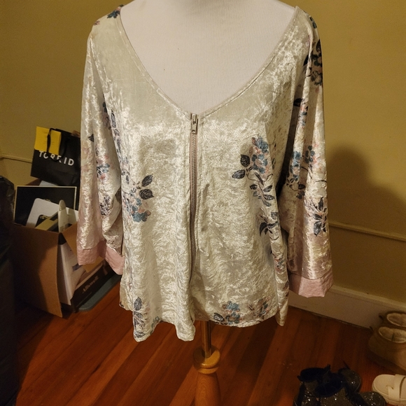 silver zip up shiny. really pretty with jeans and tank. lots of conpliments when I wore this.