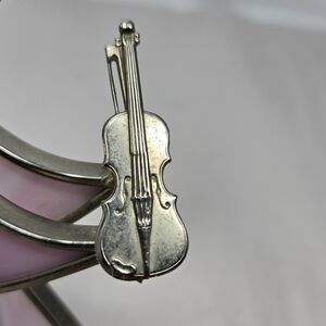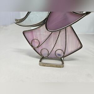 Pink Stain Glass Angel Holding A Violin Metal & Glass Figurine **FLAW**