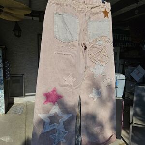 Faded pink jeans with star and peace sign patchwork embellishments. Elasticized back waist. Check measurements. Sold out everywhere and no longer being made. Great quality. Never worn.