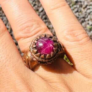 Pink Starburst Star Ruby Pitango Copper Ring Artisan Copper Statement Piece