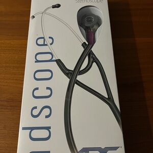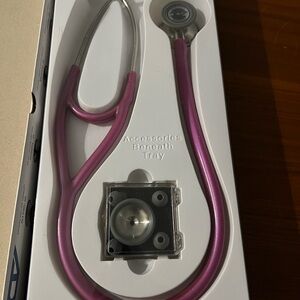 Stylish pink stethoscope with metallic accents. Ideal for medical professionals.