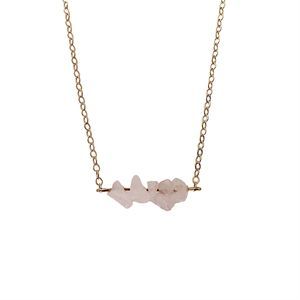 Pink Stone Cluster Necklace with Gold Plated Cable Chain Jewelry for Layering