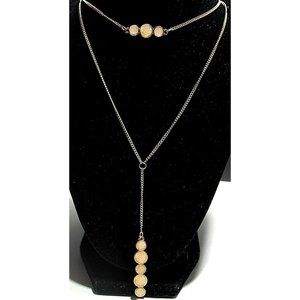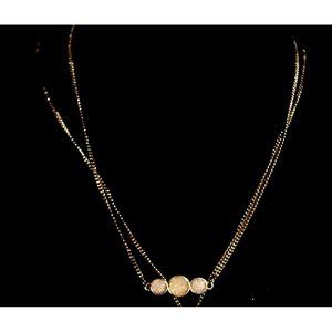 Pink Stone Crystal Gold Necklace 2 Chain Layered Crushed Crystals Peas in a Pod