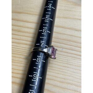 Pink Stone Silver-Tone Ring With Rectangular Center Stone & Clear Accents
