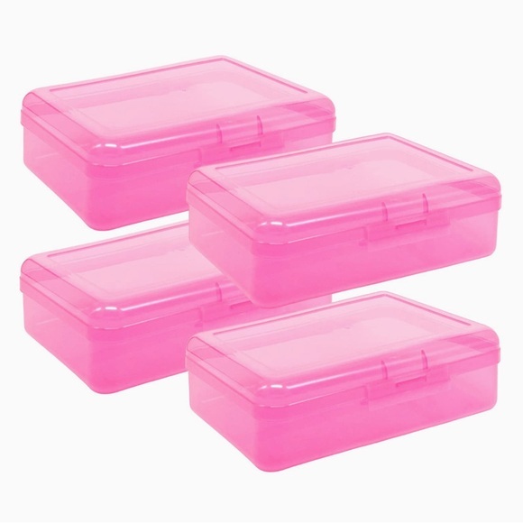 Organize your space with this stylish pink storage premium quality box set. Perfect for keeping your items neatly stored and easily accessible. Large Capacity Clear pink Box, Case, Plastic Boxes, Stackable Design, Supply Boxes for School Classroom, 4-Pack (Pink)