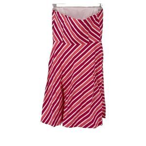 Pink Strapless Party Dress Striped A Line Ann Taylor Size 10 Preppy Knee Length