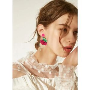 Pink Strawberry Dripping Gold Acrylic Earrings Fun Statement Jewelry