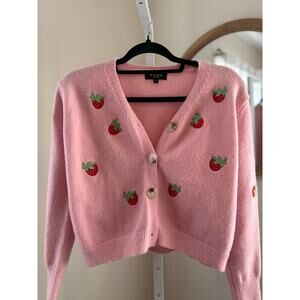 Pink Strawberry Embroidered Cardigan – WOWO | Soft Cottagecore Knit Large