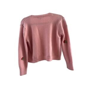 Sweet and soft pink cropped cardigan featuring embroidered strawberries across the front for the perfect cottagecore touch. Cozy midweight knit with ribbed trim and a slightly boxy fit — ideal for layering over dresses or pairing with high-rise jeans for a playful fall look.