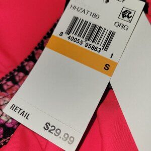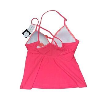 Pink Stretch Push-Up Tassel-Tie Lined Deep V Neck Fixed Cups Zig Zag. NWT