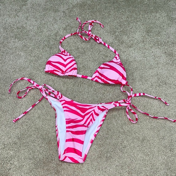 NWT Pink String Bikini Bottom’s with adjustable Triangle Top (pads included) size Small. Swimsuit Swim