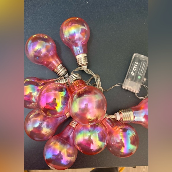 Vibrant pink string lights. Battery operated. Never used. Lights are on in second photo.