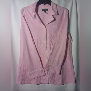 Stylish pink striped button-up shirt with a classic collar and buttoned cuffs. Perfect for casual or formal occasions.
