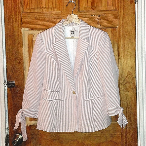 Beautiful super cute women's pink and white striped jacket in brand new like condition.