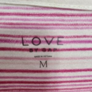 Stylish pink striped top. Features long sleeves and a v-neckline. Perfect for casual wear.