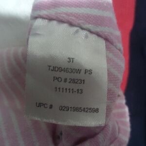 Adorable pink striped overalls with button details. Perfect for a playful look.