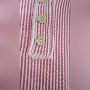 The 7th Ray Pink Striped Button-Up Top is a versatile addition to your wardrobe, offering a balance of comfort and style for a variety of occasions.