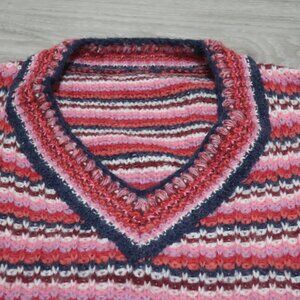 Pink Striped Thick Chunky Knit V-Neck Sweater S EUC