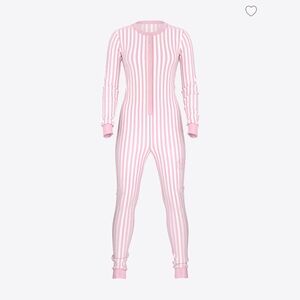 Cozy up in this pink striped onesie, perfect for a comfortable night's sleep. Enjoy the soft fabric and stylish design.