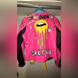 Elevate your style with this chic pink studded jacket. Perfect for adding a bold touch to any outfit.