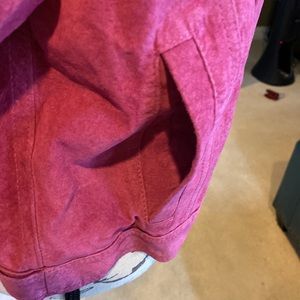 Pink suede jacket with snap button closures. Two breast pockets and side pockets. Gently worn, overall very good condition