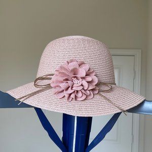Description: Stay protected from the sun in style with this adorable pink sun hat. Featuring a large flower accent, it adds a touch of femininity to any outdoor look. Perfect for the beach, park, or any outdoor adventure.