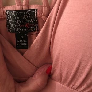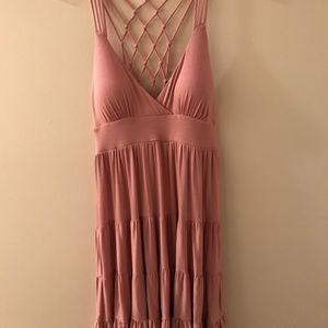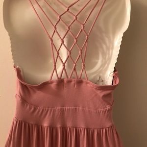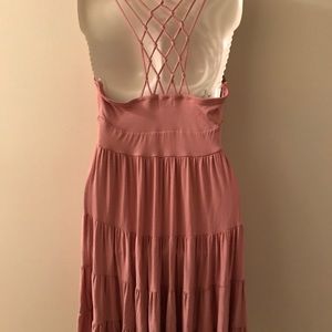 Salmon Pink high waisted sundress. Layered look with ruffle bottom. Four straps on each shoulder with adorable knotted back. Has built in bra cups. Will be happy to answer any questions, send measurements, or add additional pictures. Never been worn.