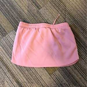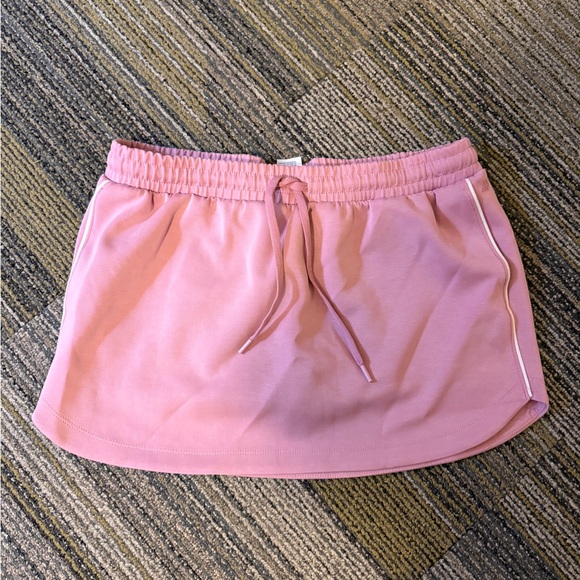 Stylish pink skort made of athletic, sweatpant-like material with drawstring waist and pockets