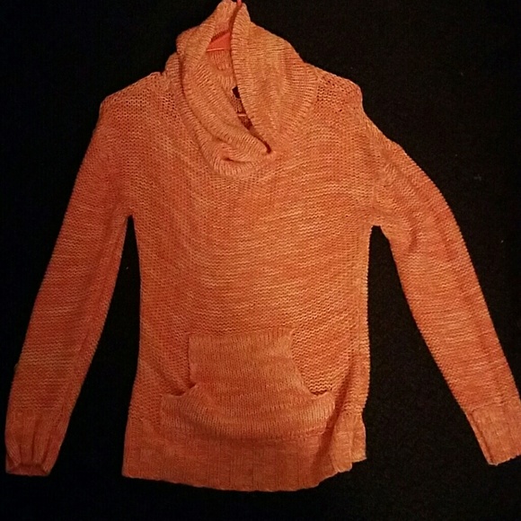 Pink Sweater with a hanging turtle neck, with a pocket in the front