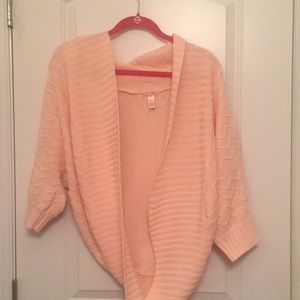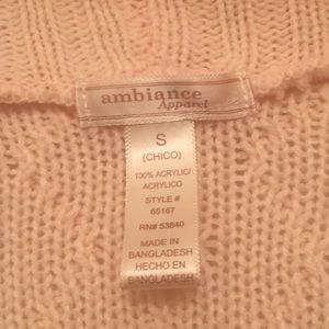 Light pink sweater/cardigan. Only wore once. No stains. No odor. In good condition.
