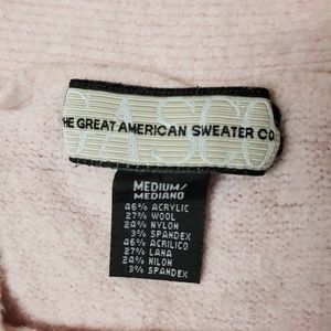 Super soft pink sweater by The Great American Sweater Co. This sweater was well loved but well cared for. It is a medium but runs small. Very, very comfortable. As is, no returns. Offers welcome 😊