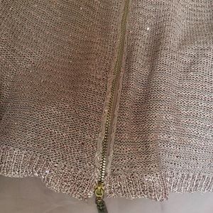mauve colored crew neck sweater with pretty pink sequins sewed into the material. A sheer pink slip underneath for comfort.