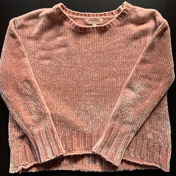 This pink sweater is super cute and warm! Perfect for the winter! In great condition. Pair with jeans or leggings for a cute casual look. The sweater is slightly cropped but not super short.