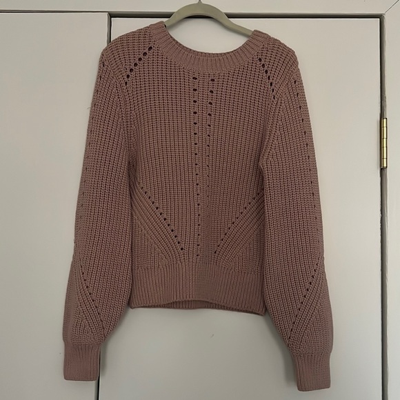 Pink H&M sweater. Gently worn. Size small. Balloon like sleeves. Soft stretchy material.