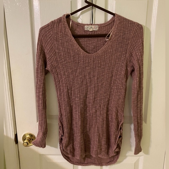 Pink sweater with beautiful criss-cross detailing on the sides. In great condition, only worn a handful of times