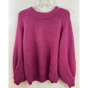 Pink Sweater Oversized Thick Knit Bell Sleeve Crewneck Size: S