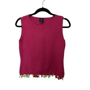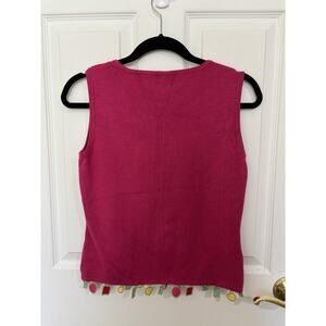 Pink Grandma Sweater Vest Artsy Hanging Detail Size Large Boxy Fit Grannycore