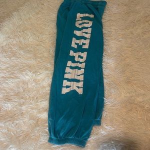 Old style PINK sweat pants with logo down the side. Pretty good condition but a stain on one of the back pant legs (last picture)