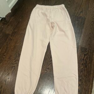 Stylish pink sweatpants featuring a unique angel print design. Comfortable and trendy for casual wear.