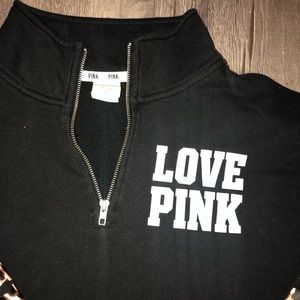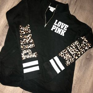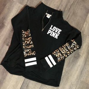 Adorable PINK sweat shirt with half zip. Oversized feel with PINK cheetah lettering down the wrist arm. Size medium