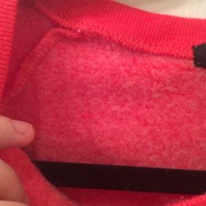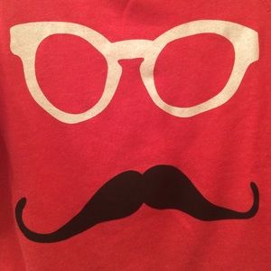 Like new. Reasonable offers only. This darker pink (or salmon) colored sweatshirt has hipster glasses and a mustache. The arms are a bit shorter than a normal sweatshirt and fall around the wrists. It's extremely soft with a fuzzy interior.🚫NO TRADES🚫