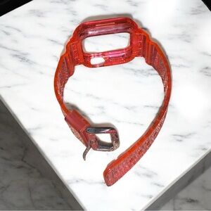 TPU (No fingerprints) with a metal stainless steel buckle.Beautiful transparent fluorescence iPhone watch strap with the case.