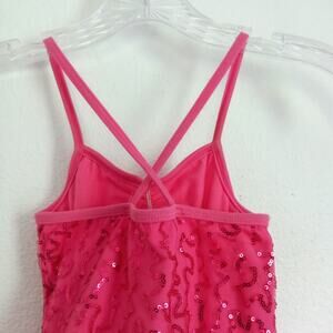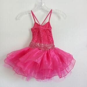Girl's Ballet Tutu in Bright Hot Pink. Adorable pull-on dance / princess / fairy costume with 4 layers of tulle and chiffon, stretchy, soft jersey full leotard embellished with sequins, criss cross straps in the back and gently gathered bodice at the neckline. Tag Size: Large. Chest: 20", Waist 20". Very Good Condition. Minimal Wear. Non-Smoking Home.
