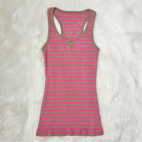 Pink & Tan Striped Racerback Tank Top