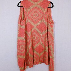 Pink & Tan Tribal Print Sleevelss Waterfall Sweater Size S