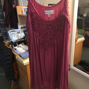 Pink spaghetti strap tank with design on front; worn once; great condition and very soft.