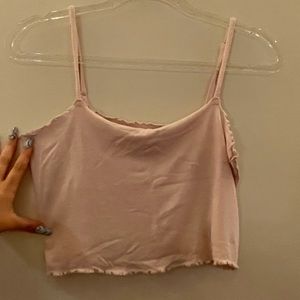 Cropped Baby Pink Ruffle Detailed Tank Top